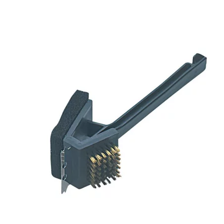 Elle comprend une brosse en laiton, une éponge en nylon abrasif et un grattoir en métal.
