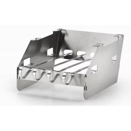 Utilisé comme rabat, il empêche les aliments de pouvoir tomber dans le boitier du brûleur. Il sert également de support à brochettes (4).
